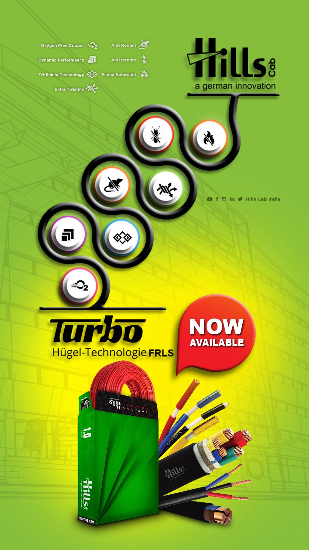 For over four decades, Hills Cab has lived up to the reputation of making reliable products that are designed to work efficiently and last a lifetime. A leading manufacturer of Wires and Cables since its inception, we augmented a wide range of products ranging from House wires (FR/FRLS/HRPVC/HRFR), Flexible Wires (Single & Multicore), PVC & XLPE Control Cables, PVC/ LOPE Instrumentation Cables, FRLS /FR/ HRFR/ HOFR /RUBBER/ LOPE Power Control & Instrumentation Cables, Low tension Copper / Aluminium conductor PVC & XLPE Power Cables, Dry & Jelly filled Telephone Cables, Railway Signaling Cables, Automobile Cables, Fire survival Halogen Cables.